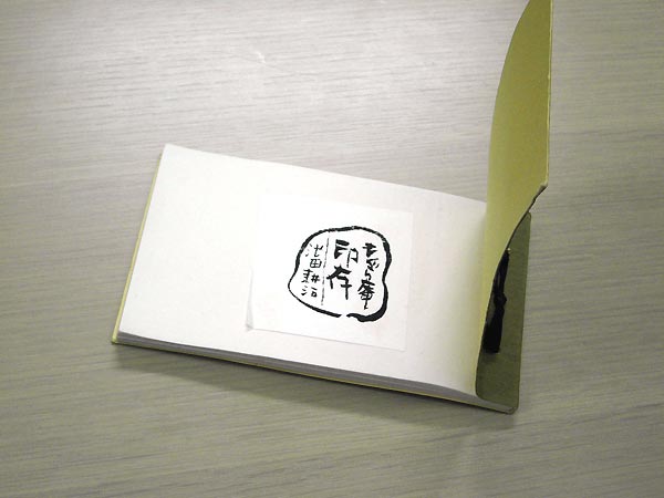 印譜集というのは昔から「和とじ」のイメージがあった。だから印を勉強しながら、本の装丁は決まっていた。さて「和とじ」とはどこに頼めばいいのだろう。今のようにインターネットですぐ調べられるわけでもなく、また「和とじ」のできる人を探すのも大変だった。ようやく見つかってみると、思っていたより近くで普通の民家。気のいいおばあさんが内職で一冊一冊「和とじ」に仕上げていくのだ。だが手作りの為、 仕上げ代が高いので簡単な方法の和とじにした。