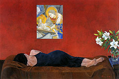 久野:ヨーロッパで困った事というのは、次第に所持金がなくなるじゃないですか。ある時期、毎日のように知人へ借金の手紙を書いていたんです。それで土屋さんに「困っている」みたいなことを書いたのかどうか、内容はよく憶えてませんが。土屋さんからある時、5万円送られてきたの。えらく感激してね、こういう人のことを真の友達っていうんだろうなって(笑)。いまだ忘れませんよ。お金という単なる金銭的なことじゃなくて(笑)、困っている時に助けてくれる人だと。それにしても美術館、教会などたくさん観ましたね。現代の美術もずっと観ていました。画廊も超一流の画廊を。現代美術と具象系の美術、先端のものも観ていました。で、先端と、古典古代という両極を観ていて、そこで気付いたのは、古いものの造形に、より新鮮な新しさを感じたのです。古代のエジプト、メソポタミア、ギリシャ、エトルリアの美術、中世から16世紀までのイタリア美術、15・16世紀のフランドル絵画及び北方絵画など、いずれもとうてい現代では及ばないであろう豊かで厳しい造形力。いま科学文明が発達してますけど、芸術の上というのは進歩がないと、確信をもったわけね。そういう意味で芸術と人間のあり方について考えさせられました。 |