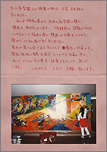 28才の私がどんなふうに生きているのかを年賀状にしたかった。めざす理想に向かって、壁画家として歩き始めた喜びをこめ、壁画の写真を一枚一枚、貼っていく。そして茶色のサインペンで、手書きの文章を添えた。「壁画独特の世界を追求しつづける仕事の中で、私にとっての寺小屋学園を結実させたいと思っています」と。